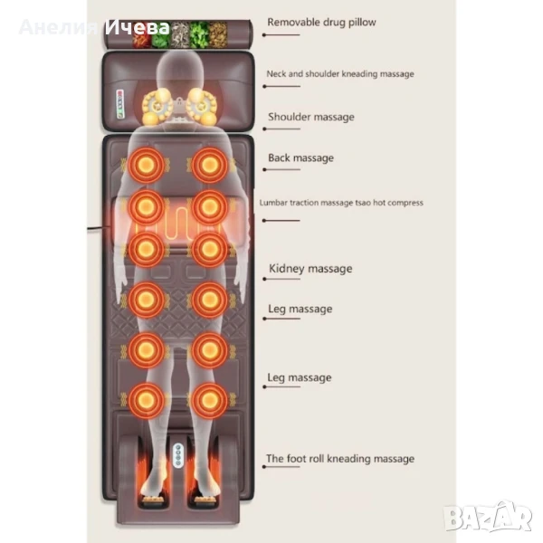 Масажни зони: Гръб, кръст, крака, цяло тяло;