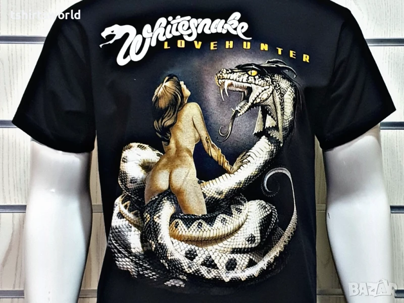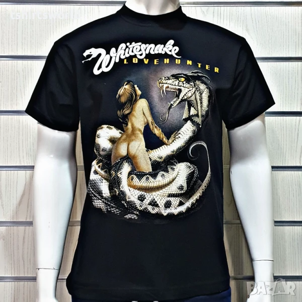 Страхотна нова мъжка тениска в черен цвят с дигитален печат на музикалната група WHITESNAKE. Тениската е изработена от висококачествен 100% пениран памук на 170 гр./м², който запазва цялостта на материята и наситеността на цветовете на черното трико дълго време. С удобна кройка, тениската е свободна и позволява максимален комфорт при носене. Професионалн изработен висококачествен дигитален печат, устойчив на пране с години. Тениската може да се пере при температура до 40 градуса. Спокойно можем да гарантираме за качеството на изработката и ярките цветове на дизайна.