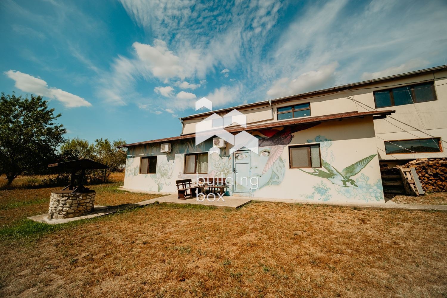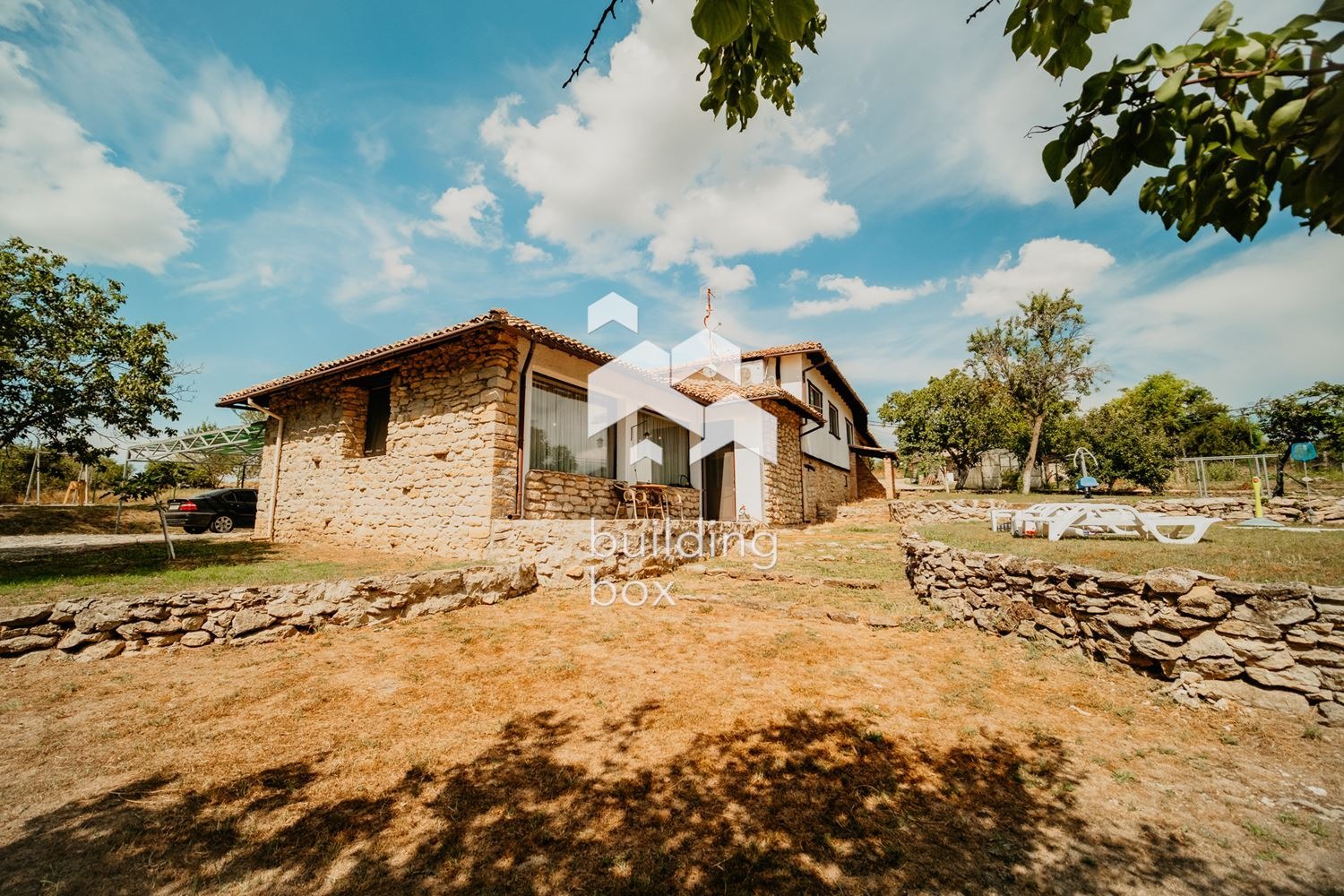 Билдинг Бокс има удоволствието да Ви представи рядко срещан тип имот в с. Аврен. На парцел от 3755 кв.м. са построени 4 сгради с обща площ от 930 кв.м., представляващи къща за стопанина на две полунива и към нея къща за поддържащия персонал, къща за гости, склад с работилница на 2 етажа и стопански постройки. Допълнително е обособена зеленчукова градина, барбекю, сглобяем басейн, кладенец с висок воден хоризонт, добре благоустроен и озеленен двор. Изключителен имот, който е заобиколен от природа, спокойствие, простор.