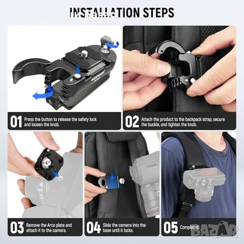 Нова Камерна щипка за раница Neewer PD Arca DSLR GoPro Insta360 камера