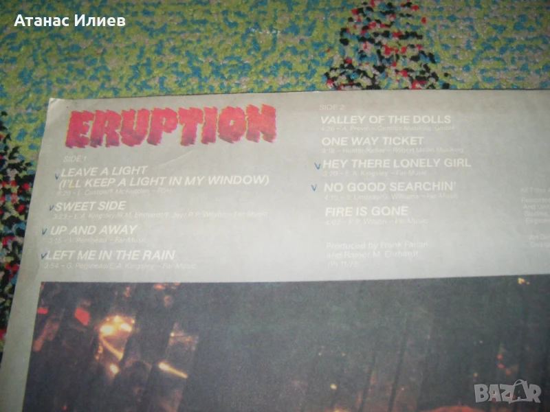 Eruption – Leave A Light, ВТА 11145, 1983г. Плочата е прослушана и е в отлично състояние.