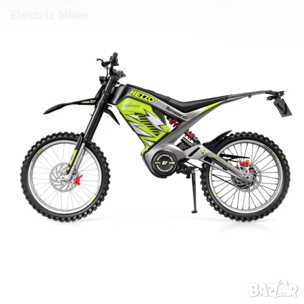 Висококачествено електрическо офроуд колело HEZZO D7 – с мощен средно разположен мотор и голяма батерия. Подходящо за планинско каране, офроуд и дълги маршрути. Разполага със сертификат COC – възможност за регистрация като L3E (мотопед).