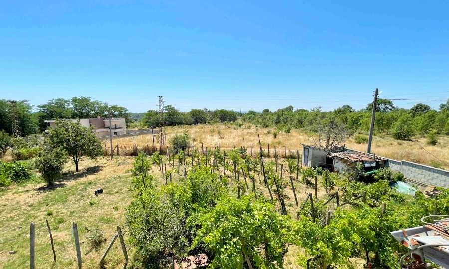 Дворното място е 1250 кв.м с налична селскостопанска постройка (30 кв.м), външна тоалетна, кладенец и лозови насаждения.