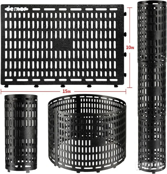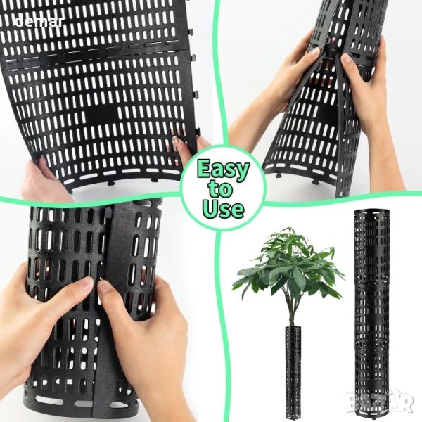 Изработени от издръжлива, устойчива на атмосферни влияния пластмаса, тези мрежести протектори за дървета за многократна употреба предпазват стволовете от повреди, причинени от животни, инструменти и атмосферни влияния. Всеки пакет включва 20 броя, които са лесно регулируеми, подреждат се и са подходящи за дървета с различни размери - от фиданки до зрели стволове. Монтажът отнема секунди с лесен дизайн със защракване. Подобрените дишащи отвори позволяват на въздушния поток, слънчевата светлина и водата да достигат до растението, като същевременно помагат за предотвратяване на гниене, вредители и болести. Идеални за защита не само на дървета, но и на цветя, зеленчуци, стълбове и ландшафтни елементи.