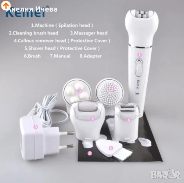 Тип продукт : Епилатор Kemei 5 в 1, Бръснене, Масаж, Почистване и Ексфолиране;