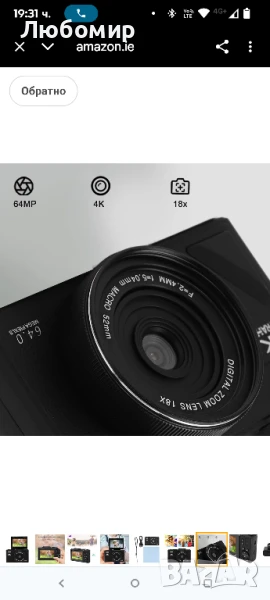 цифров фотоапарат за фотография, 64MP UHD 18X Zoom, компактен цифров фотоапарат с 3-инчов подвижен екран, камера за влогване за фотография при пътуване, влогване, фотоапарат за пътуване.64MP И UHD 4K: Тази камера разполага с 64MP сензор с висока резолюция, способен да заснема детайлни изображения, богати на цвят и контраст. С подвижен 3-инчов IPS екран и 4K видео резолюция, можете плавно да снимате стабилни HD видеоклипове.