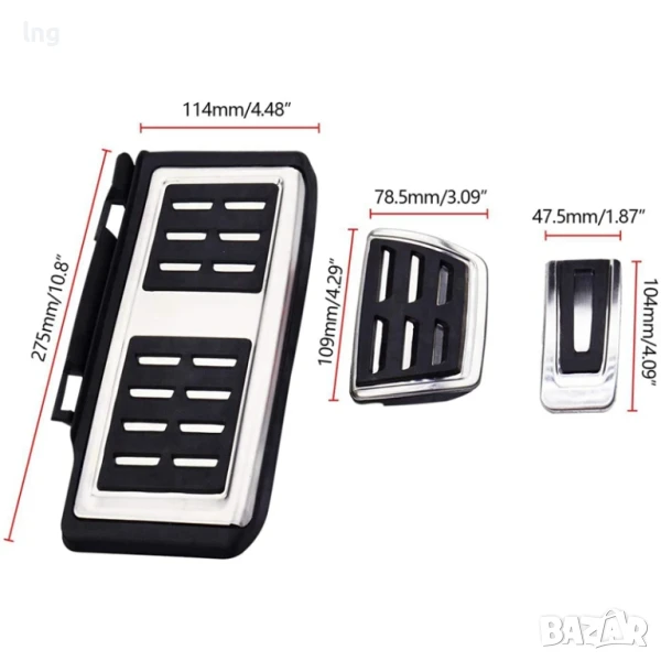 Продавам, висококачествен комплект спортни педали (накладки) от неръждаема стомана с гумени елементи против приплъзване. Този комплект е специално предназначен за модели Volkswagen и Audi с автоматична скоростна кутия, включително: