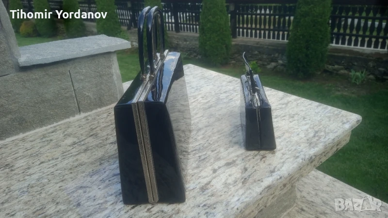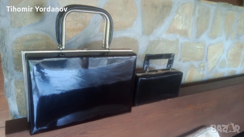 Стари ретро лачени чанти,здрави и запазени, в реално почти отлично състояние.За употреба, украса и декорация . Размери от снимките.Ценс 20 лв и 30 лв за брой.