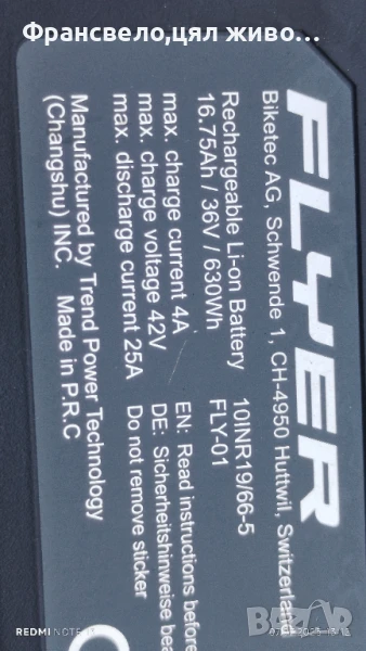 Работеща батерия за електрически велосипед колело flyer → Обява 50942917