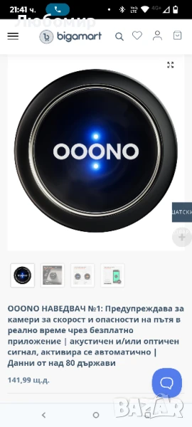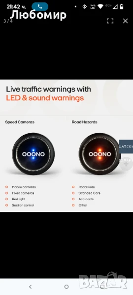 OOONO НАВЕДВАЧ №1: Предупреждава за камери за скорост и опасности на пътя