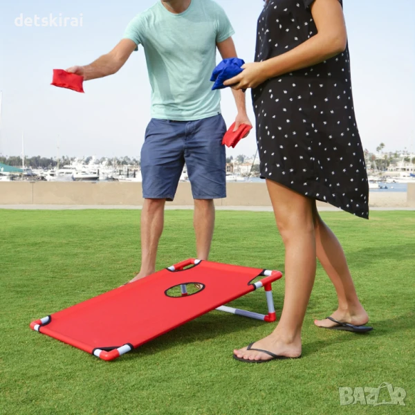 Подарете на децата незабравими мигове със забавната и развиваща игра Cornhole – класическо американско забавление, адаптирано за малчугани на възраст 4 до 7 години. Идеална за игра вкъщи, в двора, на детско парти или в детската градина, тази лека и безопасна версия на cornhole е създадена специално за малки ръчички и големи усмивки.