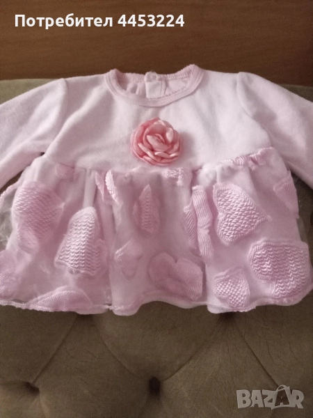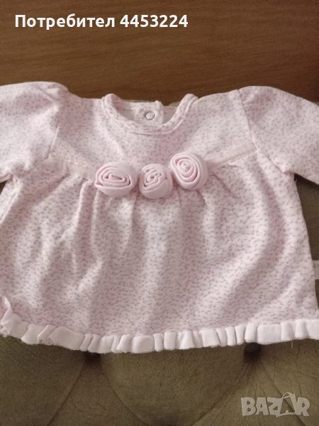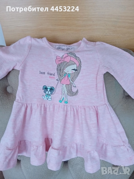 В идеално състояние, без забележки .Първата е за 3-6мес.втората и третата са за 12-18мес. четвъртата-синя е за 6-9мес.тези четирите роклички са по 5лв. Следващите две са за 0-3мес,след тях двете са за 6-9мес. и последната е за 3-6мес.тези са по 3лв.