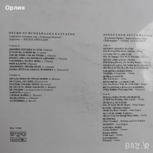 Грамофонни плочи - Песни от югозападна България - ВХА 11182, снимка 1 - Грамофонни плочи - 50944146 Грамофонни плочи - Песни от югозападна България - ВХА 11182, снимка 2 - Грамофонни плочи - 50944146 1/2