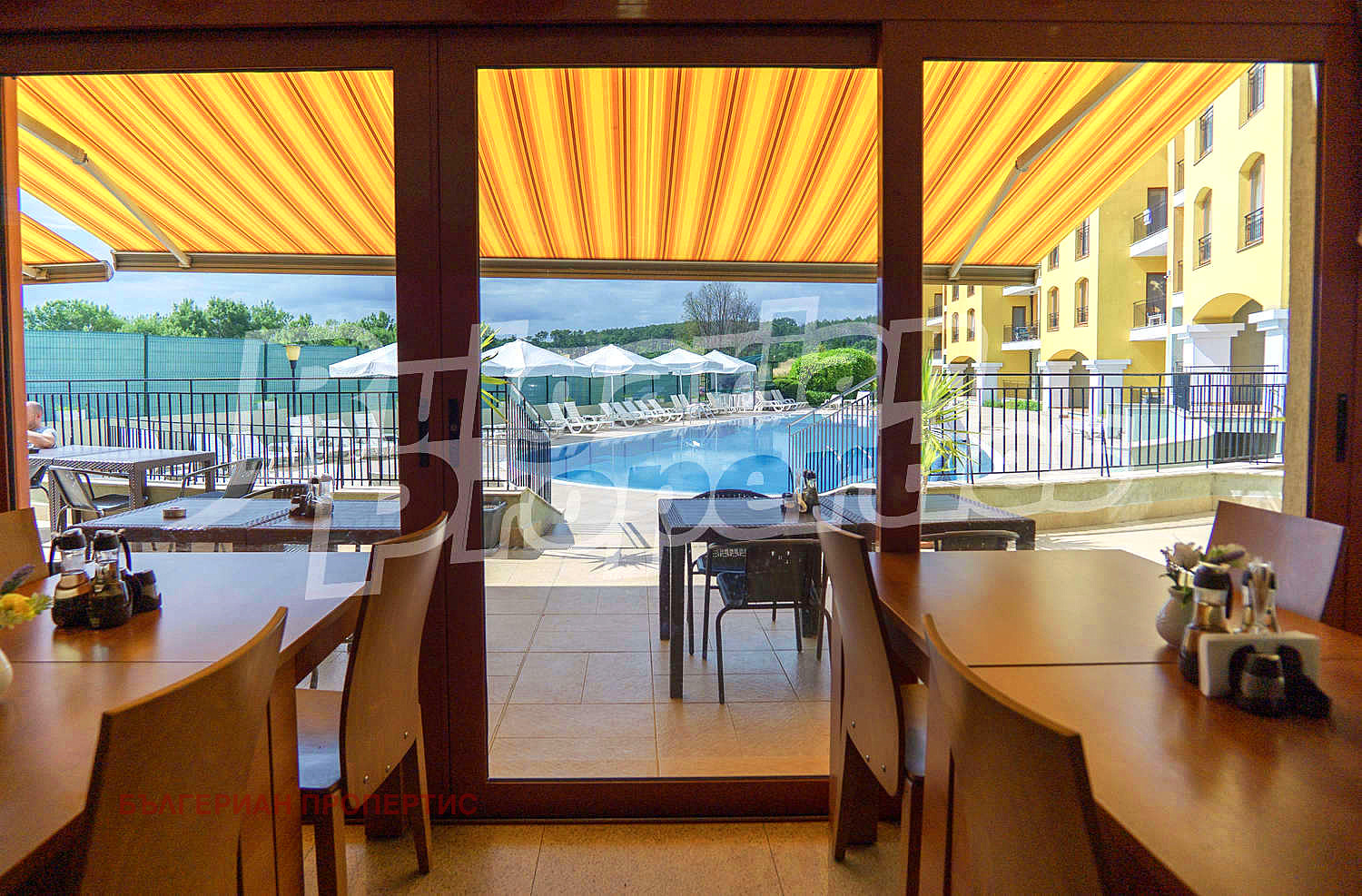 тераса с комарници на вратите.
