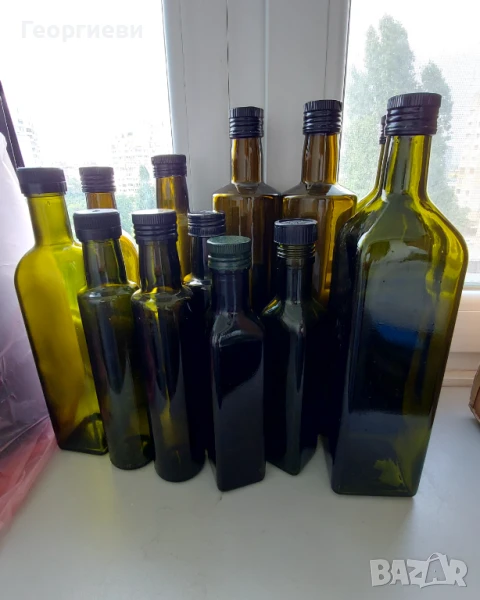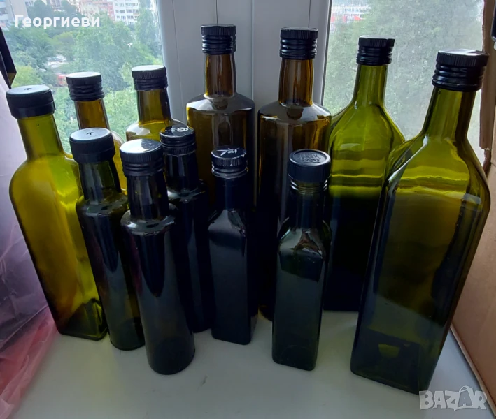 Продавам 17 броя бутилки от зехтин, с капачки на винт, зелени, без етикети, добре измити и подсушени, и са подготвени за направата на вишновка- бутилките са с широко гърло са и позволяват вътре да се насипят вишни, но отпадна това това мероприятие!