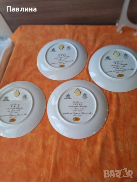 Четири чинии за стена. Имат маркировка за произход. Цена за брой 35 лева. Диаметър 20 см. Цена за серията от четири броя 110 лева