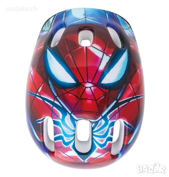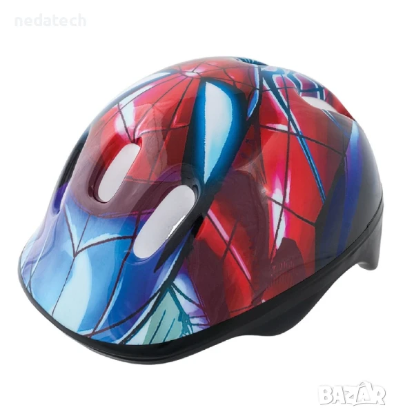 Каска на Disney Спайдърмен с вентилационни отвори. За да е в безопасност и защита на детето по всяко време! За безопасността на децата е от съществено значение, когато използват тротинетки, ролери, триколки и др., те задължително да носят каска и предпазни средства.