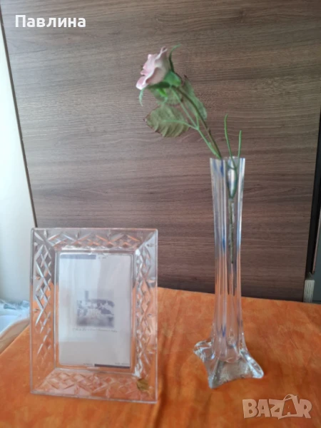 Нова италианска кристална рамка за снимка. В оригиналната си кутия е. Цена за рамката 35 лева. За снимка с размер 10/15 см . Вазата е на цена 25 лева