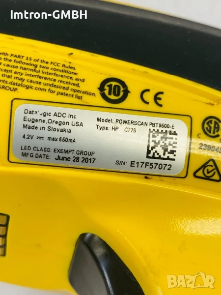 Баркод скенер Datalogic PowerScan PBT9500-E HP C778 Auto Range, 2D, USB, Bluetooth, стойка, жълт, черен, POS.