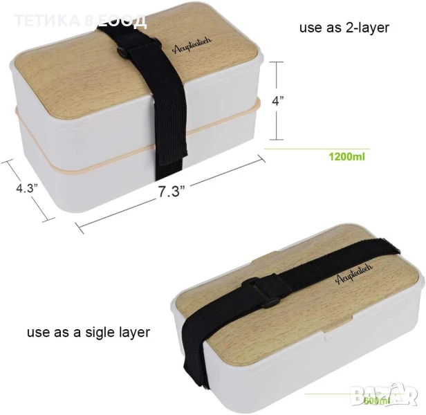 - Стилен и практичен дизайн: Тази кутия за обяд е в семпъл цвят (висококачествено бяло бамбук) и практична за употреба (2 нива с еластична лента и висок капацитет 1,2 л) и предлага страхотен дизайн, много уникална и стилна. Ще я харесате от пръв поглед.