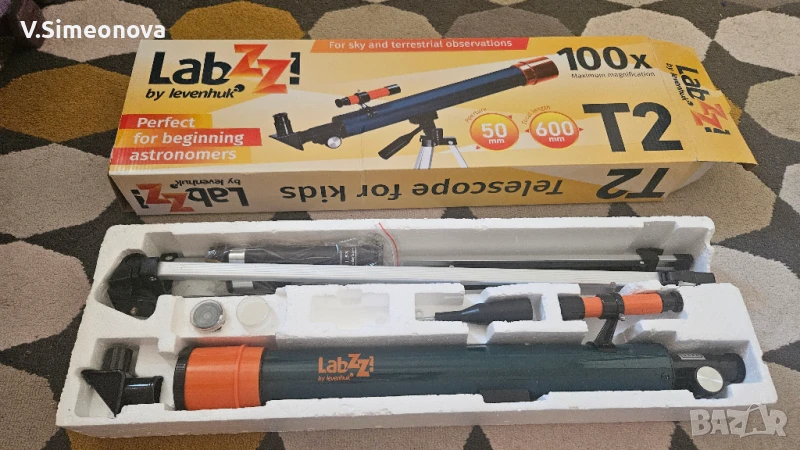 Детски телескоп. Отварян е само веднъж, не е изпозлзван. Нежелан подарък за рожден ден