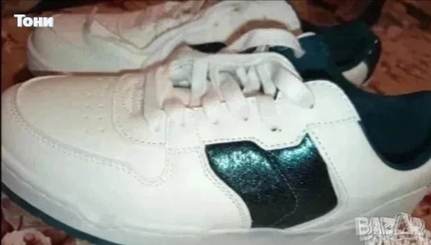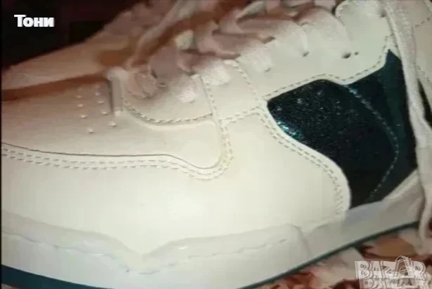Маратонките имат украса от тъмно зелена блестяща Кожа, както и са шити.