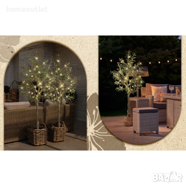 Изкуствените маслинови дървета се предлагат с енергоспестяващи LED лампи, тип гирлянд (батериите не са включени), които са икономични и по-издръжливи.