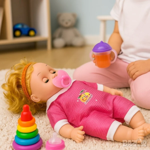 Височина: 25 см;Звукови ефекти: мама, папа, плач, смях;Движещи се очи: отварят се и се затварят при движение;Материал: пластмаса и текстил;Работи на батерии (не са включени);Варианти: Розово, сиво;Гаранция: 12 месеца.Доставка с Еконт до 4 работни дни