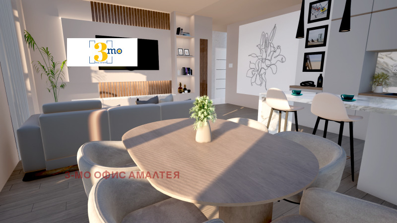 3mo Амалтея има удоволствието да Ви представи изключителен апартамент с три спални, разположен в бутиков затворен комплекс. Жилището е с обща площ от 145,61 кв.м. (застроена 130,27 кв.м.) и впечатляваща покривна тераса от 140,67 кв.м., която открива невероятна панорамна гледка и предлага безброй възможности от зелен кът за отдих, до лятна кухня или джакузи под открито небе. Имотът се състои от: входно антре (6,12 кв.м.), просторна дневна с трапезария и кухня (33,35 кв.м.) с веранда (4,14 кв.м.), три непреходни и светли спални (14,92 кв.м., 14,26 кв.м. и 22 кв.м., като последната е със собствен санитарен възел от 4,72 кв.м.), втори санитарен възел (4,37 кв.м.), коридор (3,68 кв.м.) и складово помещение (3,10 кв.м.). Разположен на последния, четвърти етаж, пентхаусът се радва на тристранно изложение изток, запад и север, което гарантира естествена светлина през целия ден и уникални панорамни гледки. Това не е просто имот. Това е бъдещият Ви дом - мястото, където ще се раждат спомени и смях, където сутрин светлината на слънцето ще Ви посреща с нежните си лъчи, а вечер ще се наслаждавате на приказен залез от терасата си в компанията на любимите хора, усещайки, че сте точно там, където трябва да бъдете. Локацията е отлична само на няколко крачки от входа на метростанция Обеля, с лесен и бърз достъп до централни булеварди, училища, детски градини и магазини.