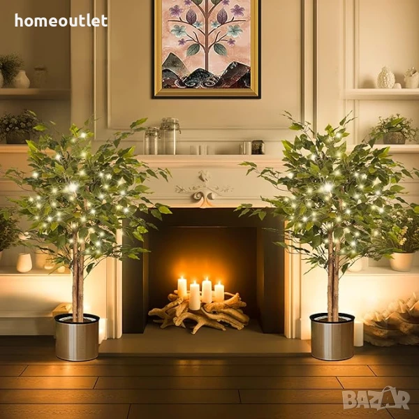 Изкуствените фикуси се предлагат с енергоспестяващи LED лампи, тип гирлянд (батериите не са включени), които са икономични и по-издръжливи.