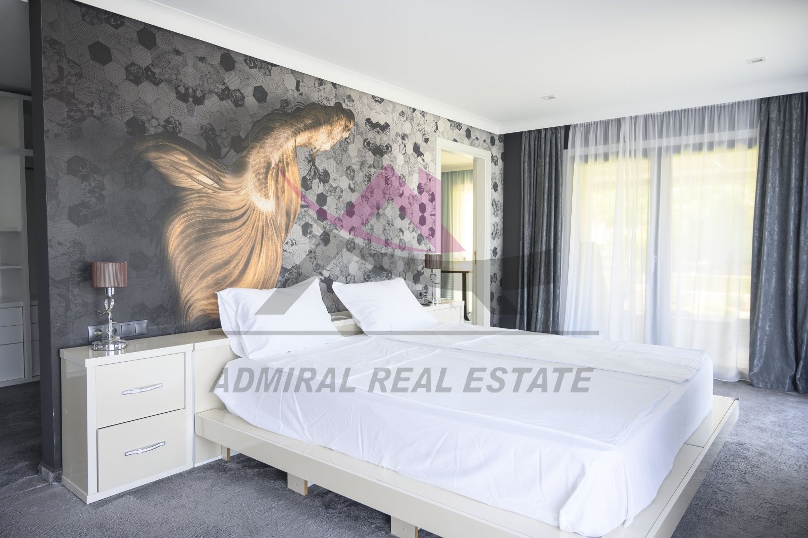 Тази луксозна, самостоятелна къща ще ви очарова още от първата крачка с атмосферата на простор, елегантност и уют, съчетани с най-модерни удобства и стилен дизайн. Съчетание от комфорт, функционалност и естетика, имотът е идеален за голямо семейство или за хора с изискан вкус, които търсят не просто място за живеене, а истински дом. Разпределение: много голям дневен тракт с кухненски бокс, четири просторни и светли спални, три стилни бани с тоалет, удобен кабинет, огромен дрешник, тераса с красива гледка. Домът е залят от естествена светлина, благодарение на множеството френски прозорци, които придават усещане за лекота, въздух и стил! Разполага с голям гараж с топла връзка подходящ за две коли, както и допълнителен двор с място за още три автомобила истинско удобство за всяко семейство! А за пълна наслада и релакс къщата предлага СПА удобства, които рядко се срещат на наемния пазар: сауна, парна баня,басейн, а към всичко това веранда, идеална за летни вечери с чаша вино и любимите хора. Дворът е красиво озеленен, отличноподдържан и носи усещане за спокойствие и усамотение.Тук може да се насладите на пълноценна почивка сред природата, без да напускате града. И най-хубавото домашните ви любимци са добре дошли! Отоплението е решено с климатична система, която осигурява комфорт през всички сезони. Към наемната цена е включена поддръжка на всички СПА помещение, двора, градината и басейнът! Намира се в комуникативен район, същевременно тих и спокоен! В близост до автобусна спирка и супермаркет Референтен номер: 25245. За повече информация относно този и други луксозни имоти: