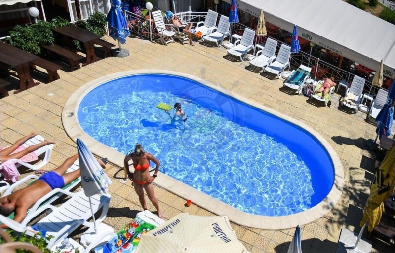 Екип SART Ви предлага за продажба хотел с ресторант и басейн построен в парцел с площ от 871 кв.м в град Бяла, област Варна.Хотелът е напълно завършен и обзаведен, на три етажа със застроена площ от 184 кв.метра и общо 24 стаи, разпределени по 8 на етаж.Всяка разполага с две или три легла, които имат собствен санитарен възел, климатик, мини бар и телевизор. Стаите на втория и третия етаж са с тераси и се открива нескриваема морска панорама, която няма да бъде закрита, защ0т0 не се разрешава пред хотела да се строи повече.
