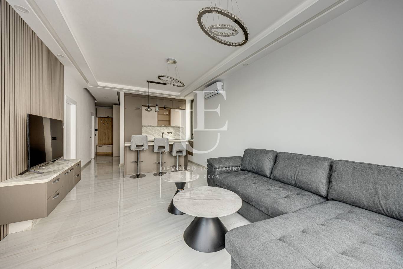 Имотът се намира на четвърти етаж, напълно завършен и обзаведен с внимание към всеки детайл. Интериорът предлага съчетание от модерни линии, естествена светлина и функционалност, което го прави отличен избор както за лично ползване, така и за отдаване под наем. Отоплението е предвидено чрез термопомпа.