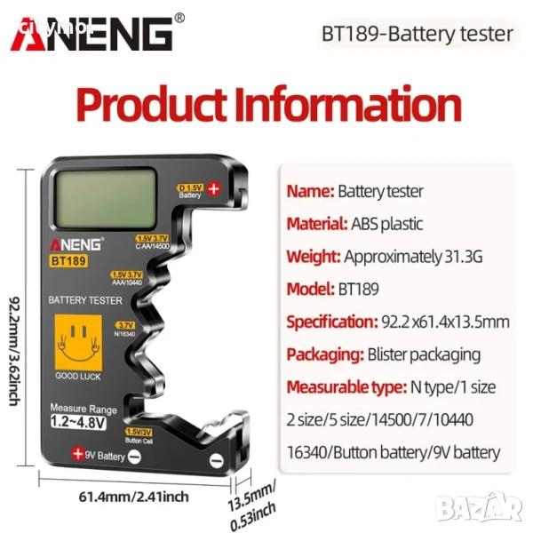 Тестери за батерии BT 189 с LCD дисплей - проверка на почти всички видове батерии, AA AAA 18650, бут