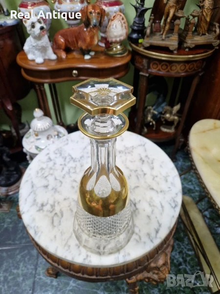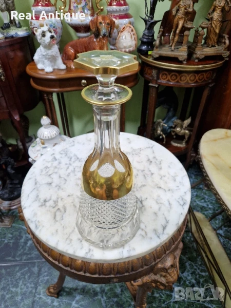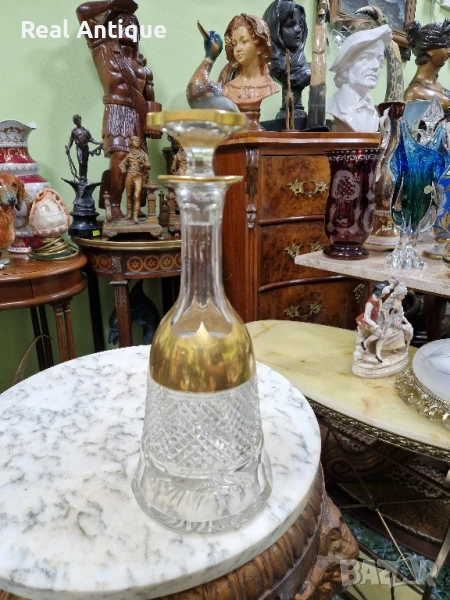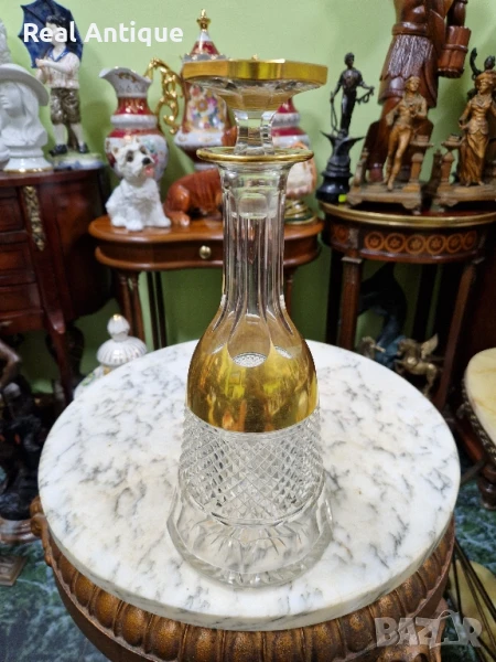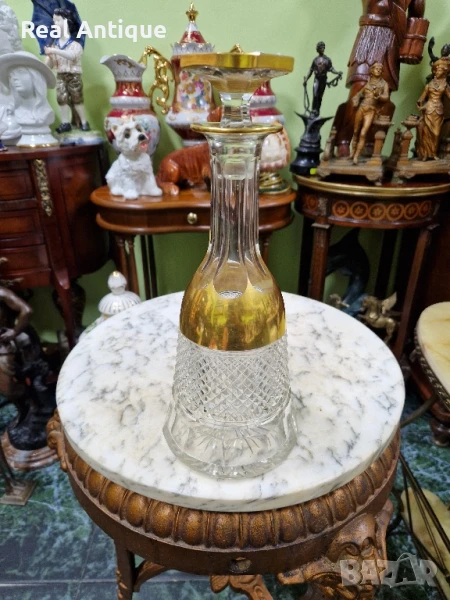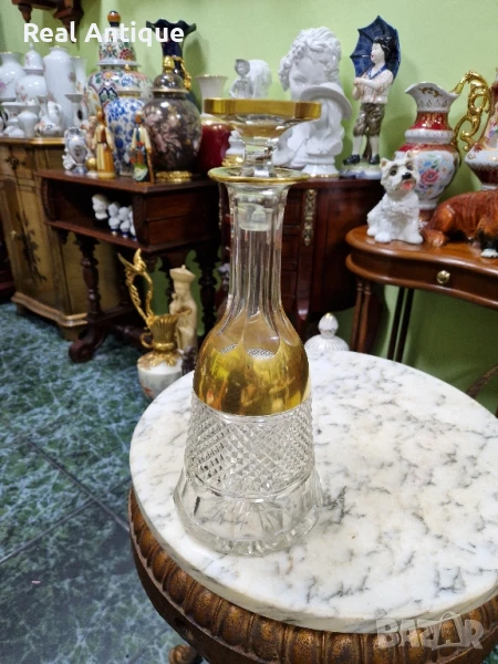 Продавам страхотна рядка антикварна немска кристална гарафа декандер с 24 каратова позлата в перфектно състояние без никакви забележки. Тежка здрава масивна. Височина 30 см ширина 12 см. Чудесно допълнение към интериора на Вашия дом офис вила. Подходяща и за подарък. Работя с всички куриери. Отговарям бързо.