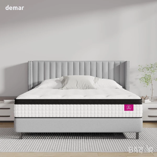 Този двоен матрак с дебелина 28 см е с 9-зонови джобни пружини и гел мемори пяна за ортопедична опора и облекчаване на натиска, идеален за всички позиции на сън. Средната му твърдост осигурява баланс между комфорт и подравняване на гръбначния стълб, докато дишащият плетен калъф и охлаждащата гел пяна насърчават въздушния поток и регулират температурата. Индивидуално опакованите пружини изолират движението, а подсилените ръбове предлагат стабилност и предотвратяват провисване - чудесно за двойки. Доставя се вакуумно опакован за лесно сглобяване, не съдържа вредни химикали и е подходящ за различни основи за легла. Оставете 72 часа за пълно разгъване.