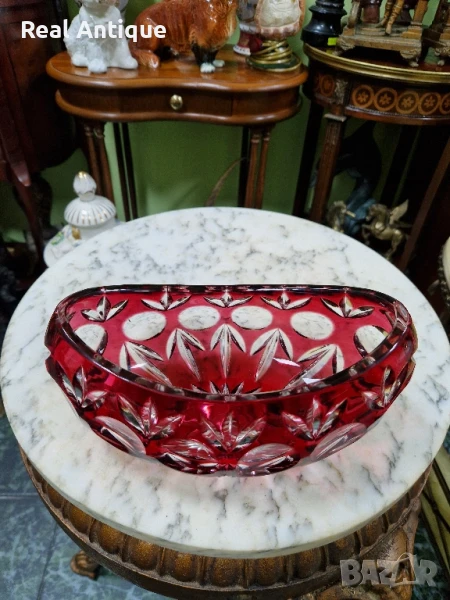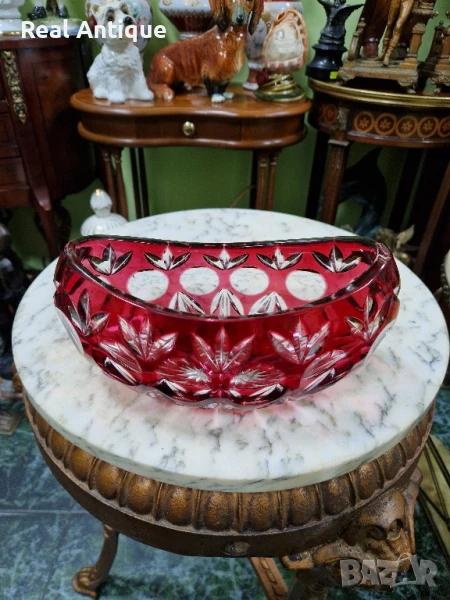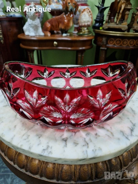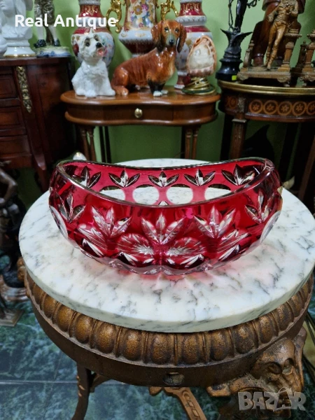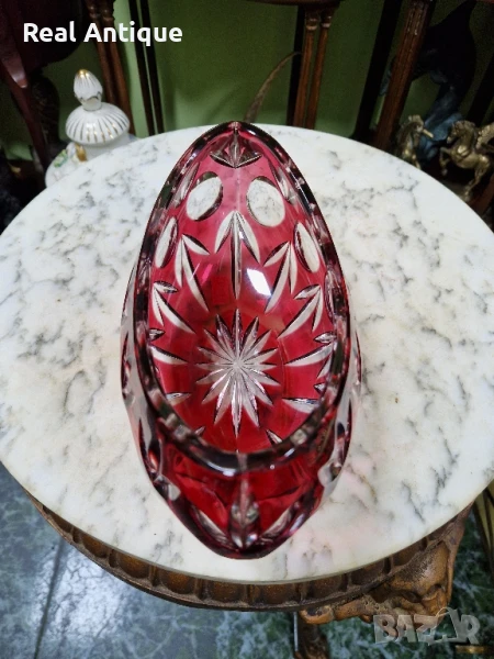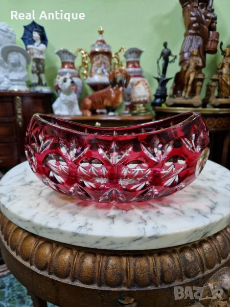 Уникална антикварна колекционерска кристална купа бомбониера Бохемия Bochemia