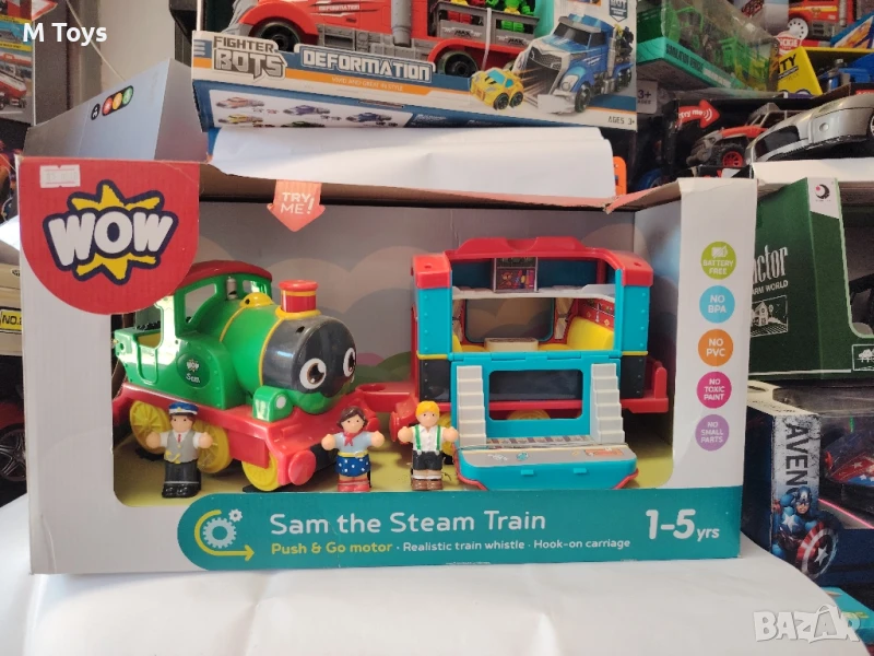 Sam the Steam Train – Влакче с вагон и фигурки от WOW Toys ✨🚂 🎉 Промоция