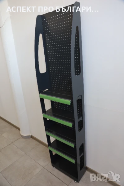 Разполага с 4 регулируеми и едно фиксирано ниво, както и перфогръб по цялата височина за още повече удобство и функционалност.