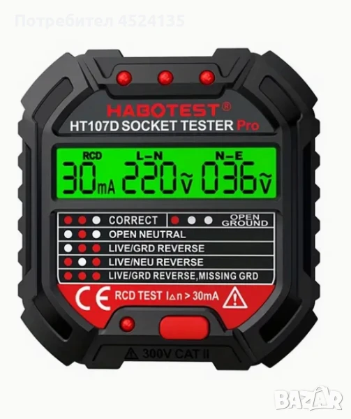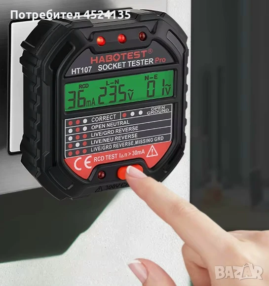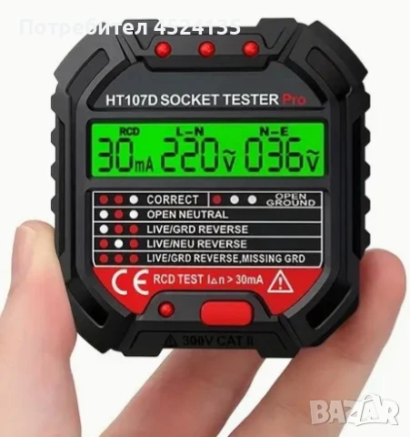 Уред за тестване на Розетки за AC Напрежение, Тест за RCD и Нулева Линия на Земята, снимка 1 - Други инструменти - 50952519 Уред за тестване на Розетки за AC Напрежение, Тест за RCD и Нулева Линия на Земята, снимка 2 - Други инструменти - 50952519 Уред за тестване на Розетки за AC Напрежение, Тест за RCD и Нулева Линия на Земята, снимка 3 - Други инструменти - 50952519 Уред за тестване на Розетки за AC Напрежение, Тест за RCD и Нулева Линия на Земята, снимка 4 - Други инструменти - 50952519 Уред за тестване на Розетки за AC Напрежение, Тест за RCD и Нулева Линия на Земята, снимка 5 - Други инструменти - 50952519 1/5