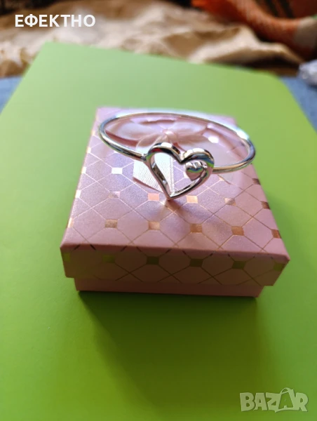 Нова, масивна сребърна гривна.Твърда, със сърце ❤️ , 🌷 в подаръчна кутия. → Обява 50952625