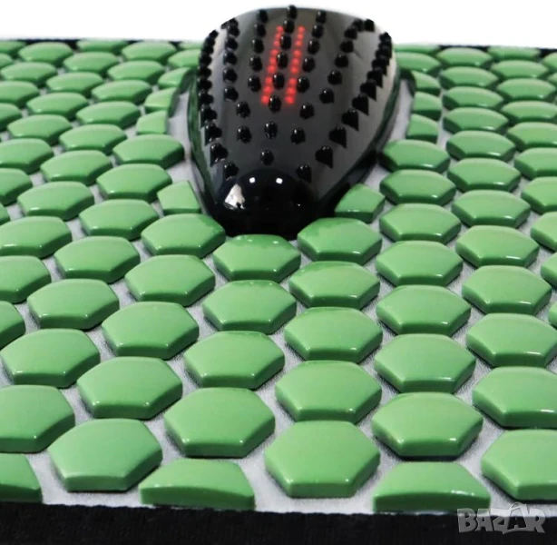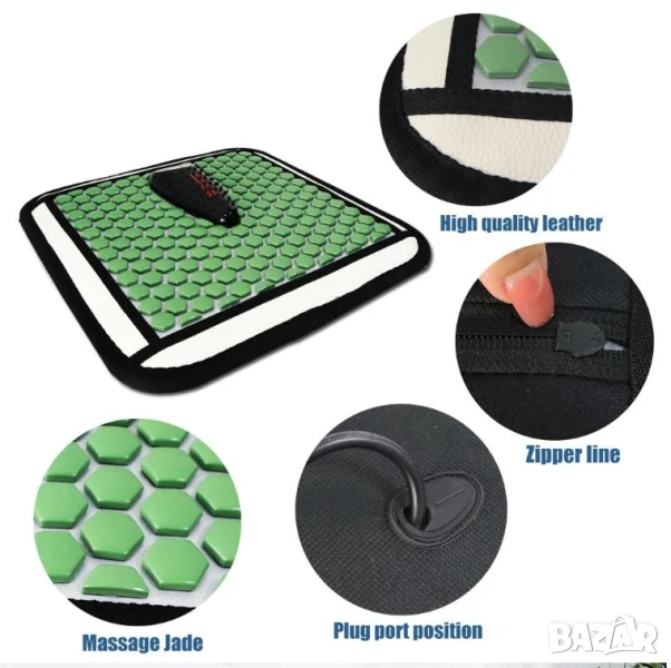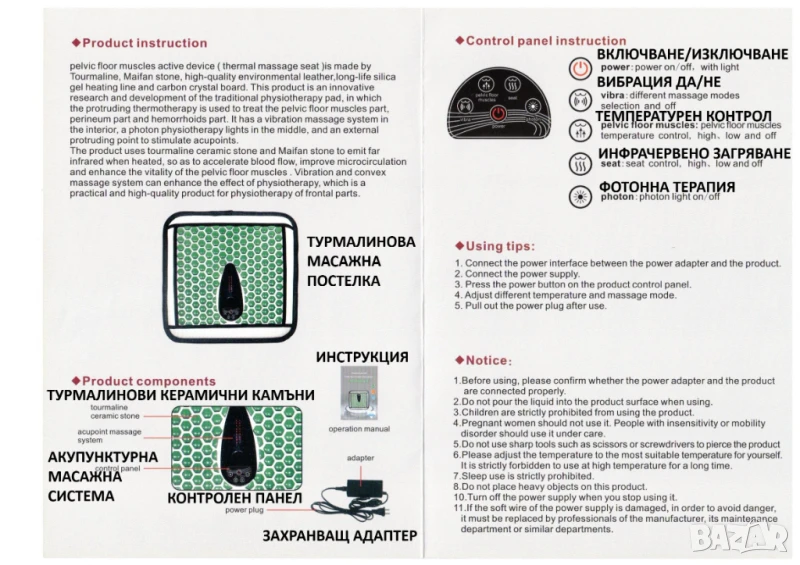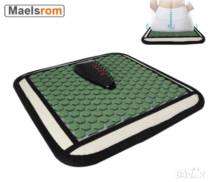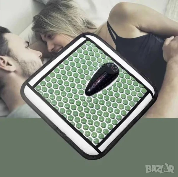 * Масажната постелка е в комбинация от здравословен камък турмалин, полускъпоценен камък Майфан (Maifan), червен фотонен инфрачервен лъч и мека вибрация.