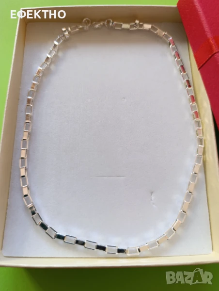 Чисто нов, масивен и дълъг сребърен ланец.В кутия.