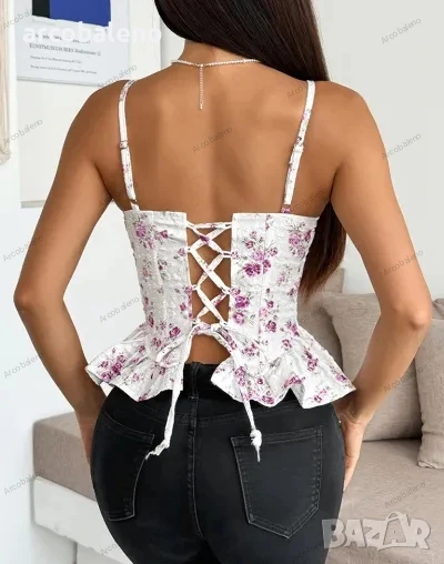 Дамски секси топ с връзки и гол гръб, 2цвята
