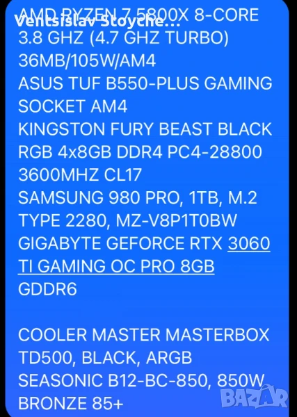 ΠΡΡΠΊΠ°ΠΌ Π³ΠΎΡΠΎΠ²Π° Π·Π° Π³Π΅ΠΉΠΌΠΈΠ½Π³ ΠΈ ΡΠ°Π±ΠΎΡΠ° ΡΠΈΡΡΠ΅ΠΌΠ° Π·Π° Ryzenβ―7β―5800X, 32β―GB DDR4β―3600, RTXβ―3060β―Ti, Samsungβ―980β―Proβ―1β―TB NVMe + Π΄ΠΎΠΏΡΠ»Π½ΠΈΡΠ΅Π»Π΅Π½ 1β―TB HDD, Seasonicβ―850β―W, CoolerMaster TD500