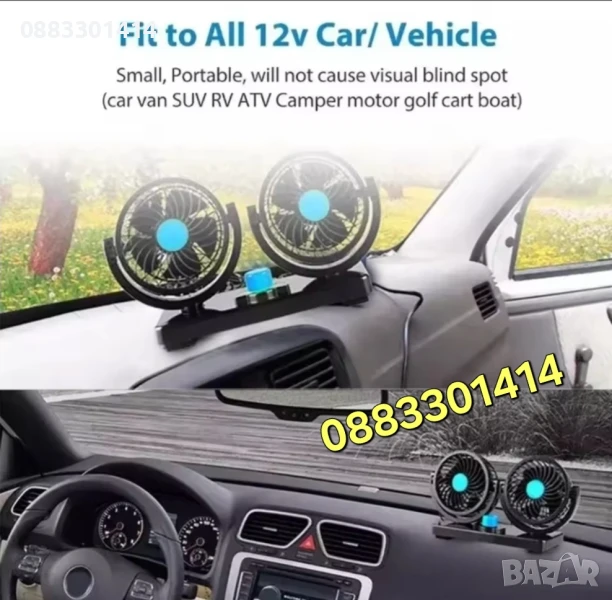 Двоен вентилатор за автомобили, бусове, каравани и камиони.