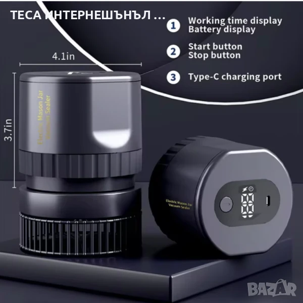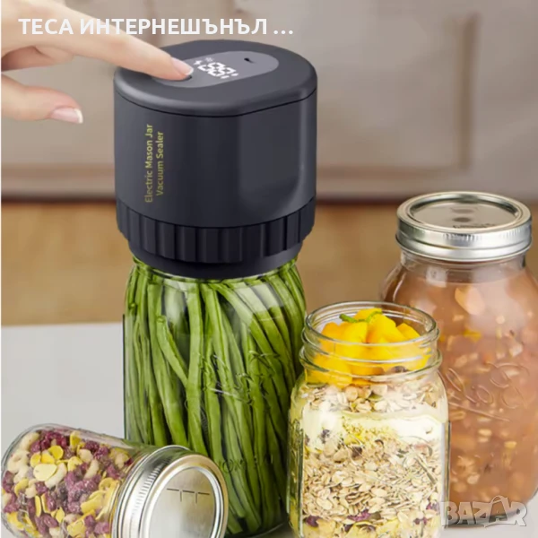 Този електрически вакуумен уред за буркани тип Mason е перфектното решение за съхранение на храна, приготвяне на ферментирали продукти и удължаване на срока на годност – само с едно натискане на бутон.