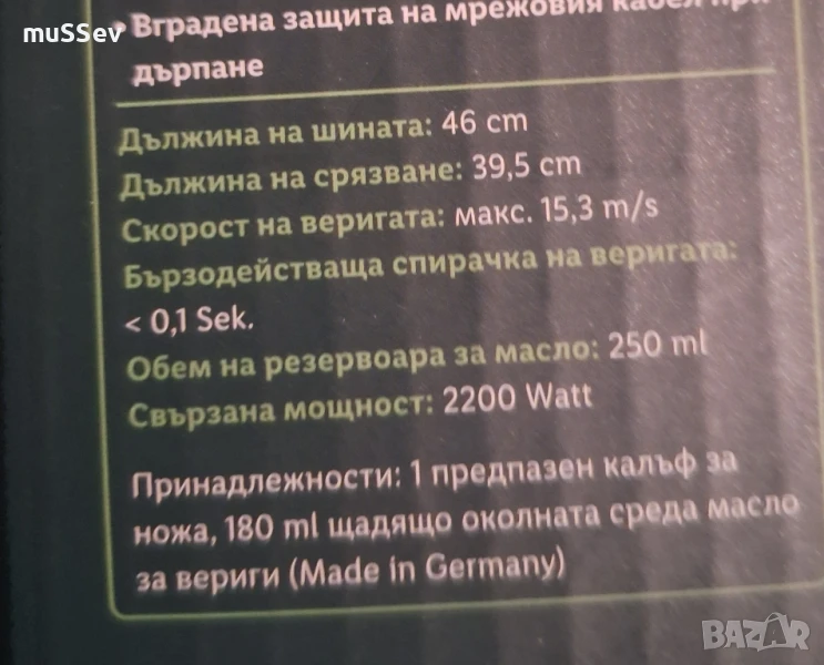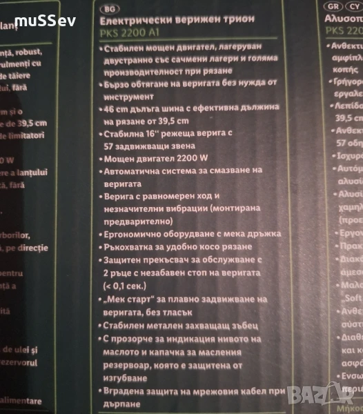 мощна електрическа резачка на Парксайд 220В 2200W 40см. шина.