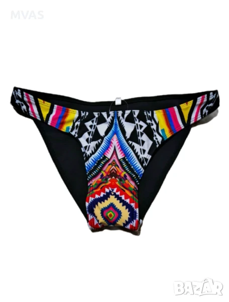 6)Черен бански долнище 9 лв фигурален отпред шарен. отпред е двоен плат не прозира, плътен.