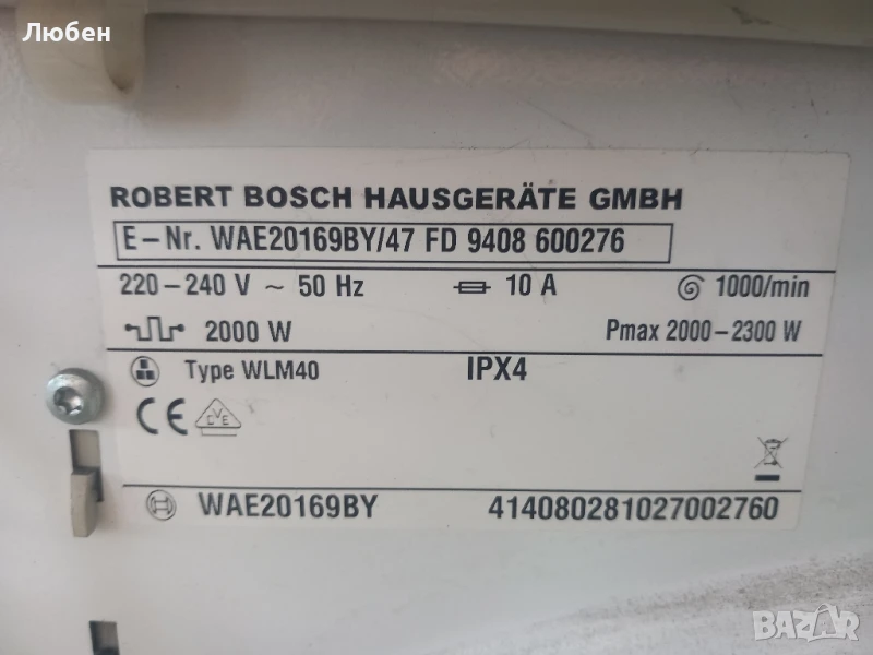 Продавам на части пералня BOSCH WAE20169BY → Обява 50957650
